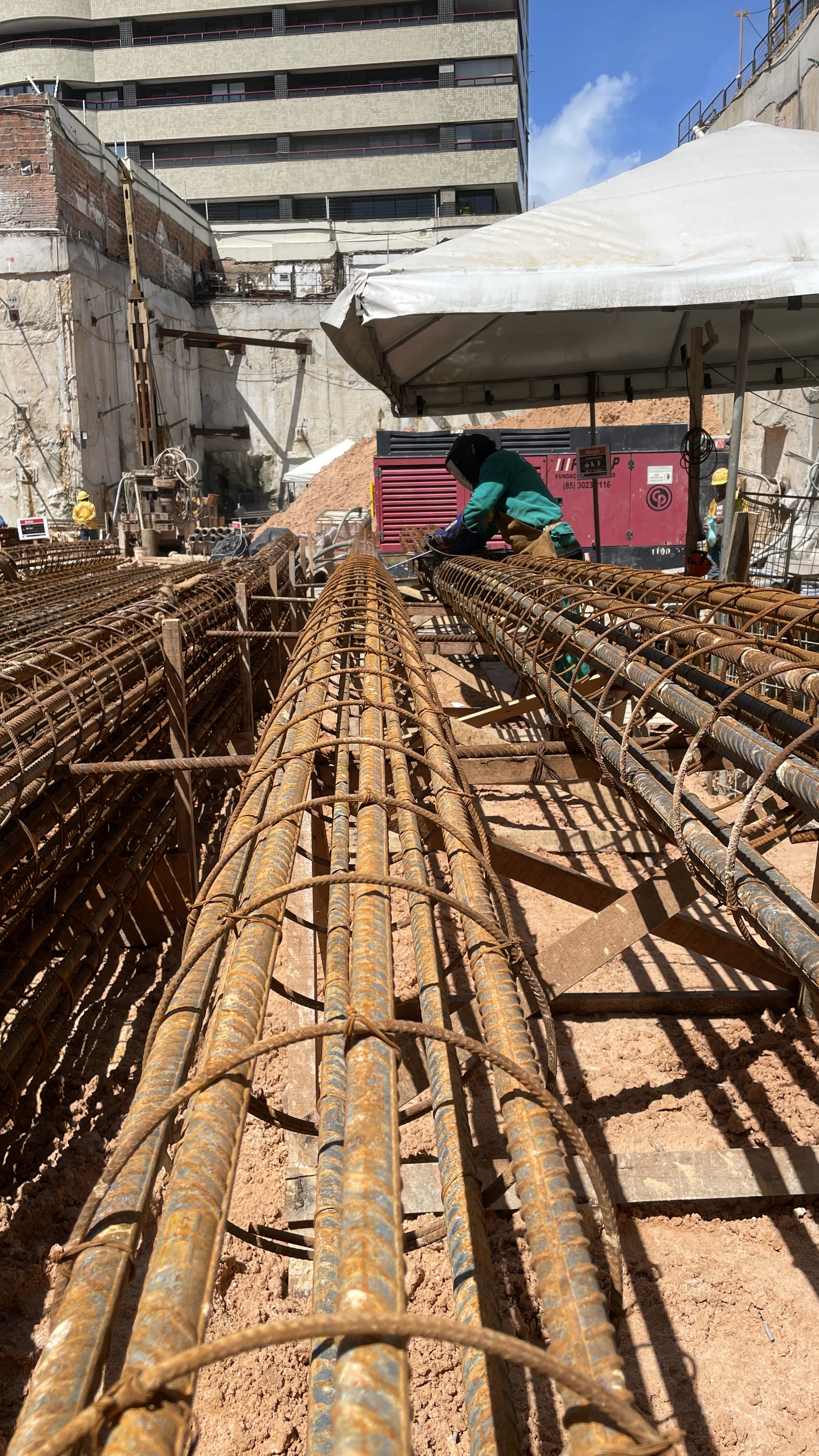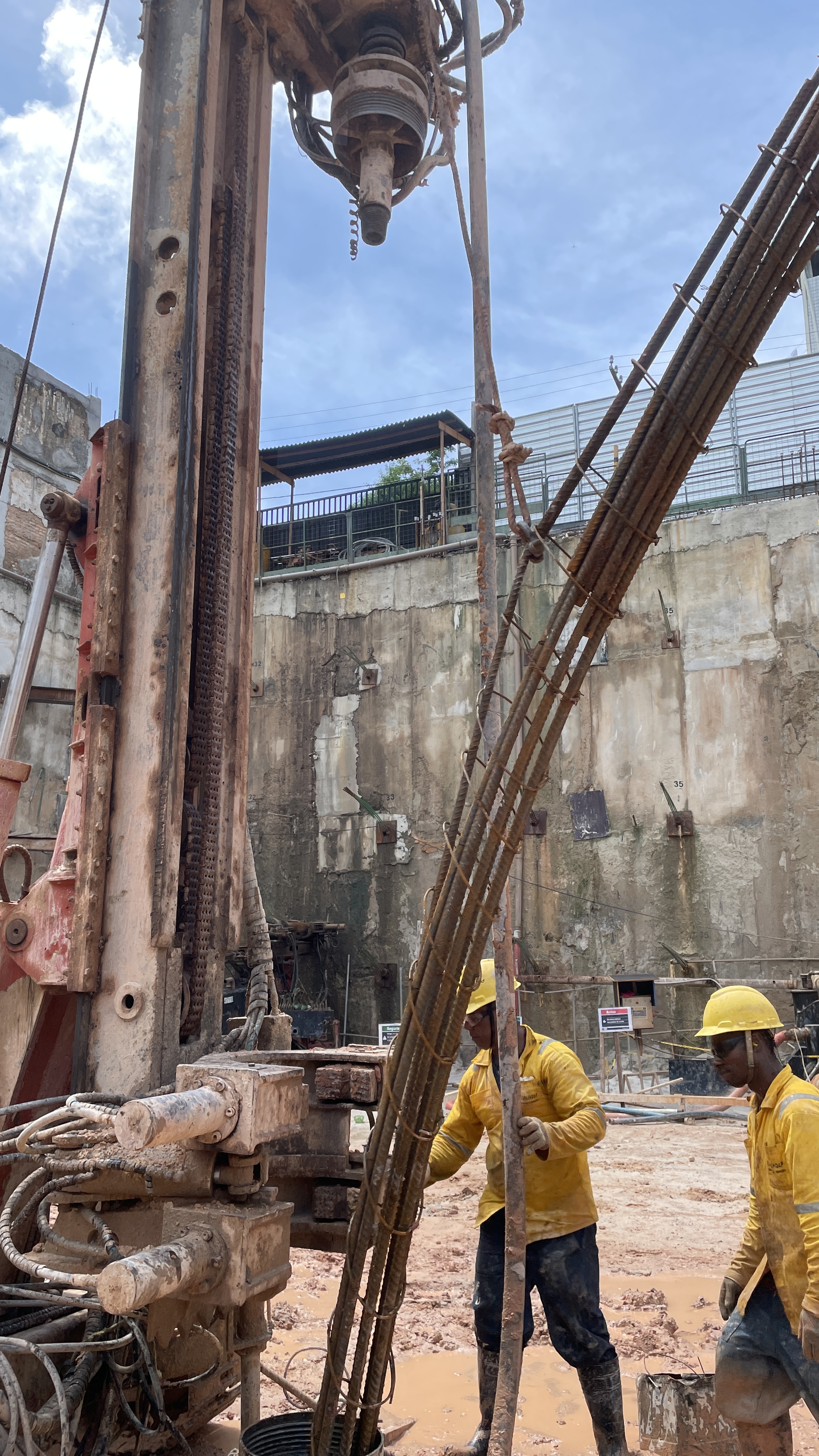 Desafio de Fundações no Diagonal by Pininfarina: durante a fase de fundações do empreendimento Diagonal by Pininfarina, enfrentou um desafio técnico relevante: a execução de 579 estacas, com armaduras de até 14 metros de comprimento. Uma parte significativa dessas estacas demandava cravação em rocha, o que aumentava consideravelmente a complexidade do processo. O serviço era executado por uma empresa terceirizada, que apresentava limitações operacionais, como: • Ausência de processos padronizados • Baixa integração entre as equipes envolvidas • Utilização de ferramentas e equipamentos defasados. Apesar da produtividade média estar alinhada com o padrão de mercado — cerca de 20 metros por dia —, esse desempenho era insuficiente frente às exigências do cronograma e à complexidade da obra. Diante desse cenário, identificaram-se riscos concretos de atrasos e de baixo desempenho produtivo. A situação exigiu uma atuação estratégica da equipe de engenharia responsável pela gestão da obra, visando mitigar os impactos e garantir o cumprimento dos prazos estabelecidos.