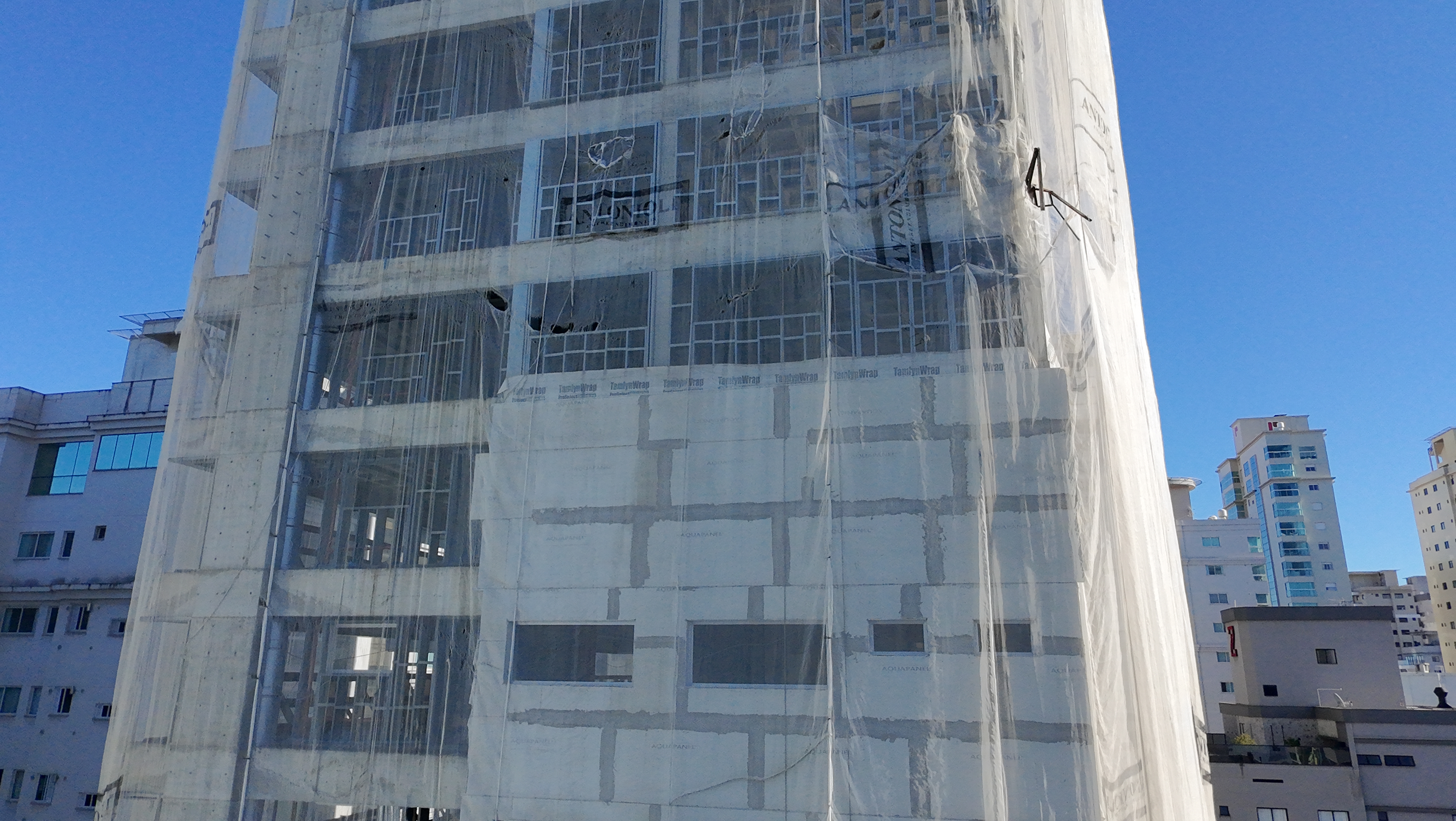 Para recuperar o cronograma, a CNA entendeu que seria necessário ampliar o uso desse método também para a fachada. Assim, mesmo com parte do edifício já executada em alvenaria tradicional (até o 9º pavimento), definiu-se a adoção do sistema de fachada em Steel Frame e o uso de Drywall em todas as áreas internas.