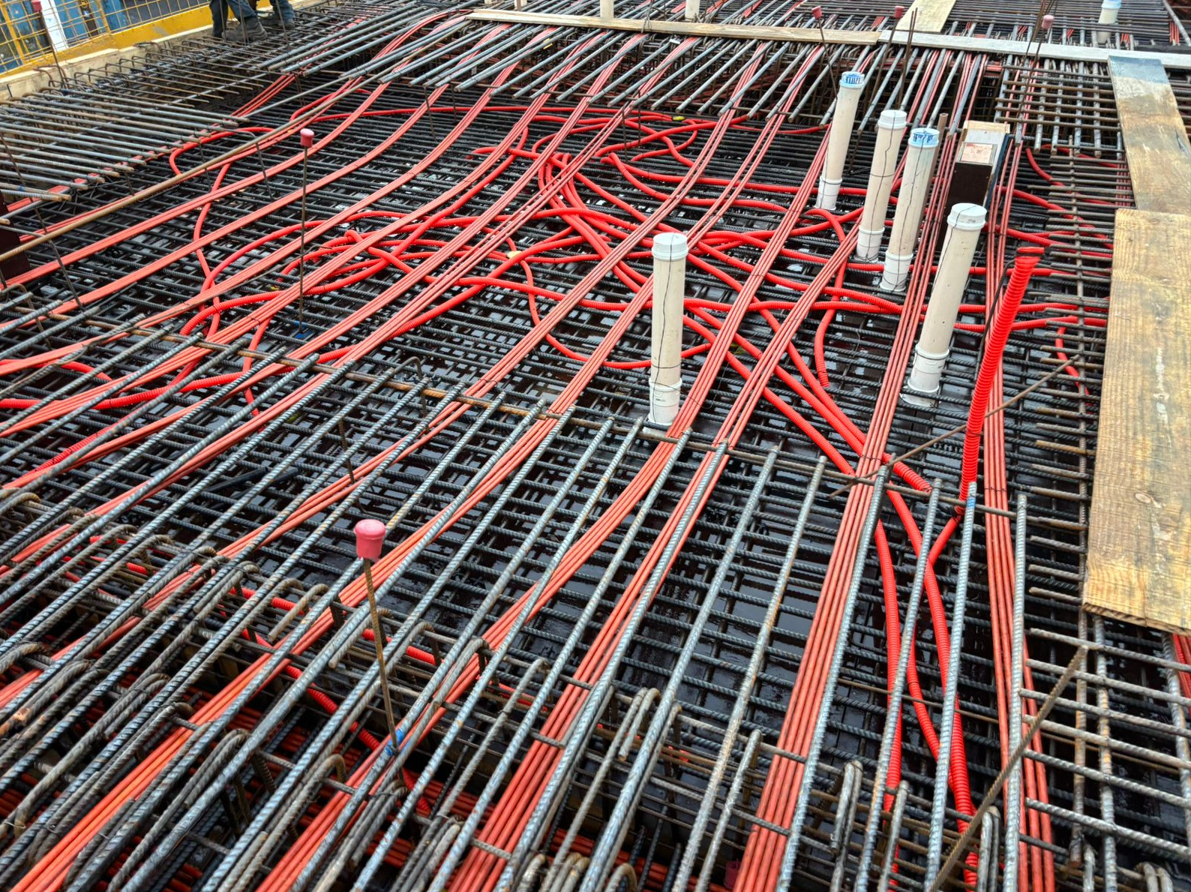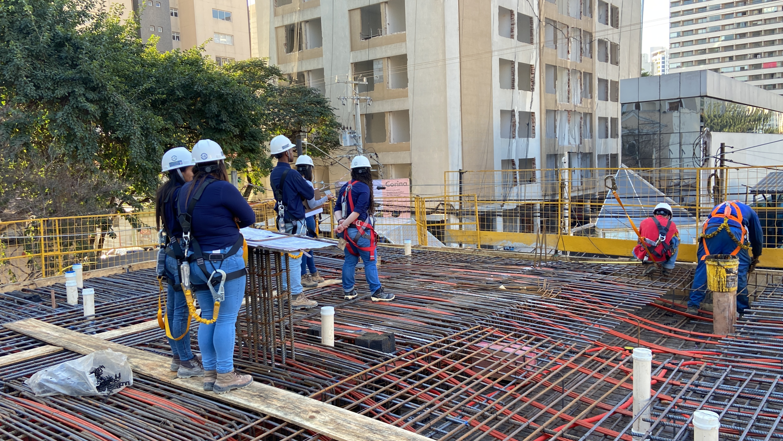 A solução foi implementada a partir de três frentes principais: aquisição de formas prontas, utilização de grua desde o início da obra e adoção da protensão para reduzir o volume e a altura das vigas de transição. Essas medidas resultaram em simplificação da montagem, melhor logística de canteiro e ganhos de produtividade na execução. A protensão, em especial, permitiu reduzir a altura das vigas, liberando pé-direito no térreo e otimizando compatibilizações. Para aferir os resultados, a produtividade foi monitorada continuamente e comparada com obras semelhantes. Foram controlados dados de mão de obra (homem.hora), metas de produção diária e ritmo de execução por área de laje. Esse acompanhamento sistemático possibilitou validar os ganhos obtidos, além de registrar indicadores que servirão como referência para obras futuras. O processo trouxe maior previsibilidade e possibilitou criar um banco de dados comparativo para apoiar decisões técnicas em novos empreendimentos.