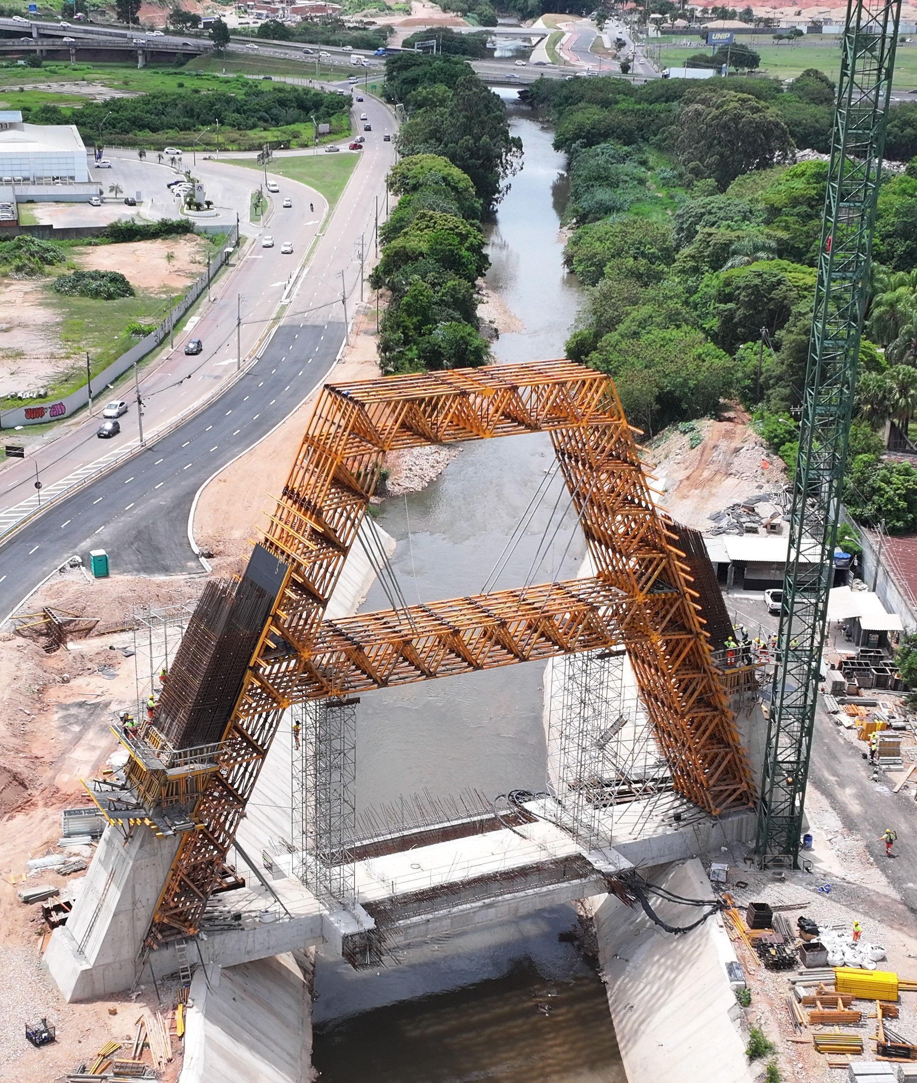 Dentro do pacote de obras do prolongamento da Avenida Frederico Ozanan, em Jundiaí-SP, está uma ponte estaiada sobre o Rio Jundiaí.